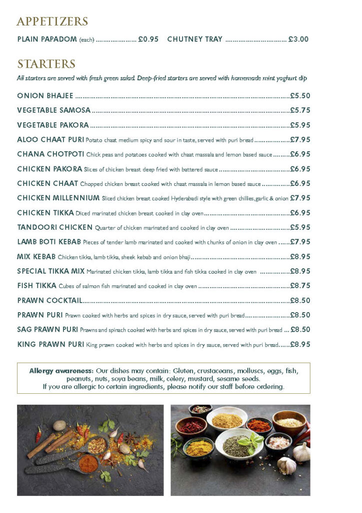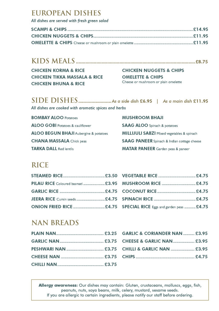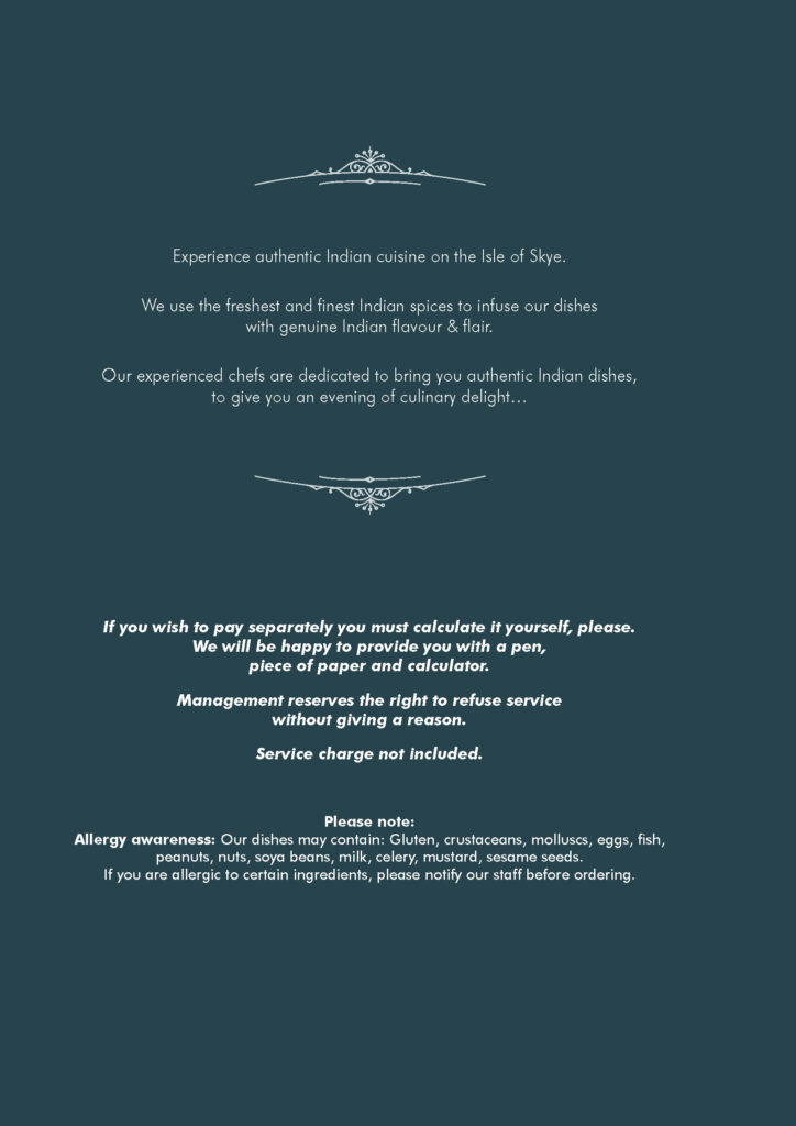Our dishes may contain gluten, crustaceans, molluscs, eggs, fish, peanuts, nuts, soya beans, milk, celery, mustard, sesame seeds.